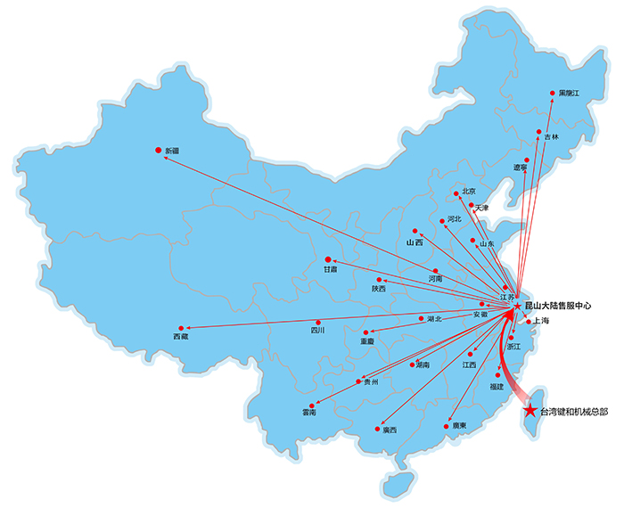昆山嘉尼赫機(jī)械有限公司為臺(tái)灣鍵和機(jī)械股份有限公司在大陸設(shè)定的唯一子公司,本公司于2010年4月在昆山仕泰隆模具城成立,應(yīng)市場(chǎng)需求于2015年2月搬遷至昆山周市鎮(zhèn)成立鍵和中國(guó)售服中心。設(shè)有獨(dú)立的零配件倉庫及機(jī)臺(tái)大修車間,機(jī)臺(tái)樣機(jī)展示廳。